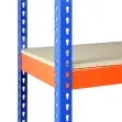 Los tableros puede ser de aglomerado o melamina blanca (no canteada) de 16 mm de espesor, y los componentes se ofrecen tanto en color azul y naranja como en azul y gris.